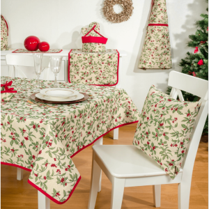 Tafelkleed – luxe gobelinstof – Christmas Berries – Hulst – Besjes – Kerst – Vierkant 100 x 100 cm