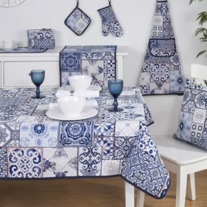 Tafelloper – luxe gobelinstof – Mural – Tegelmotief – Delfts blauw – Loper 140 x 45 cm