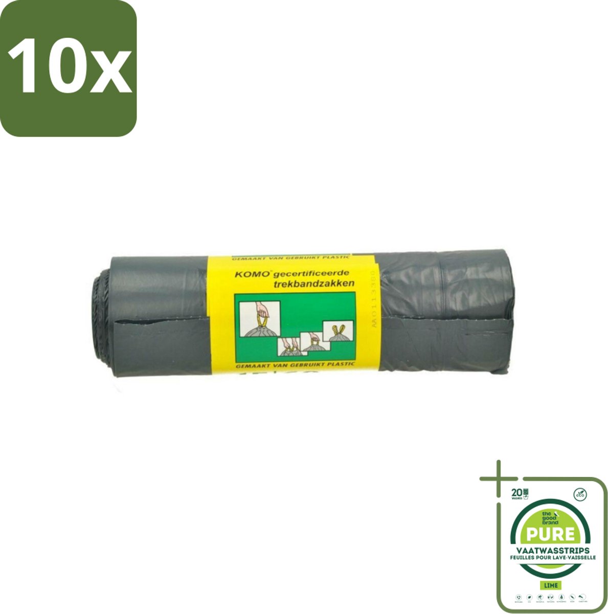 10 x Komo Vuilniszakken Trekband 60L 15 stuks per verpakking – Grootverpakking – Afvalzakken – Afvalzakken Met Trekband – Afvalzakken 60 Liter – Afvalzakken Grijs – Afvalzakken Stevig