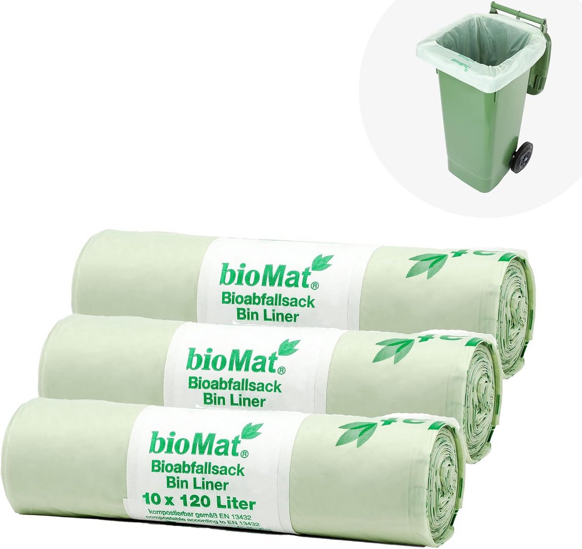 Kies voor een duurzame en sterke oplossing voor uw organisch afval met deze hoogwaardige, composteerbare vuilniszakken. Deze premium zakken van 120 liter worden geleverd in een verpakking van 30 stuks en zijn ideaal voor de GFT-container of biobak. **Kernmerken:** * **Groot Volume:** 120 liter, geschikt voor grote hoeveelheden GFT-afval. * **Hoogwaardige Kwaliteit:** Vervaardigd in Duitsland met meerlaagstechnologie (3 lagen) voor maximale scheurvastheid en duurzaamheid. Ze zijn ademend, wat helpt om vocht en nare geurtjes te verminderen. * **Volledig Composteerbaar:** Gecertificeerd volgens DIN CERTCO (EN13432) en OK Compost HOME. Dit garandeert volledige biologische afbreekbaarheid zonder microplastics achter te laten, zowel in industriële installaties als thuiscompost. * **Klimaatneutraal:** Het productieproces is klimaatneutraal, van productie tot verwijdering. * **Veelzijdigheid:** Perfect voor groente-, fruit- en tuinafval. Let op: niet aanbevolen voor zeer zwaar of nat tuinafval, gebruik daarvoor eventueel papieren zakken. **Gebruikstips:** Bewaar de zakken op een koele, droge plek (15-20°C) in de originele verpakking om de kwaliteit te behouden. Laat zeer nat afval uitlekken voordat u het in de zak doet.