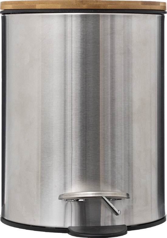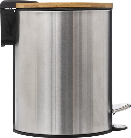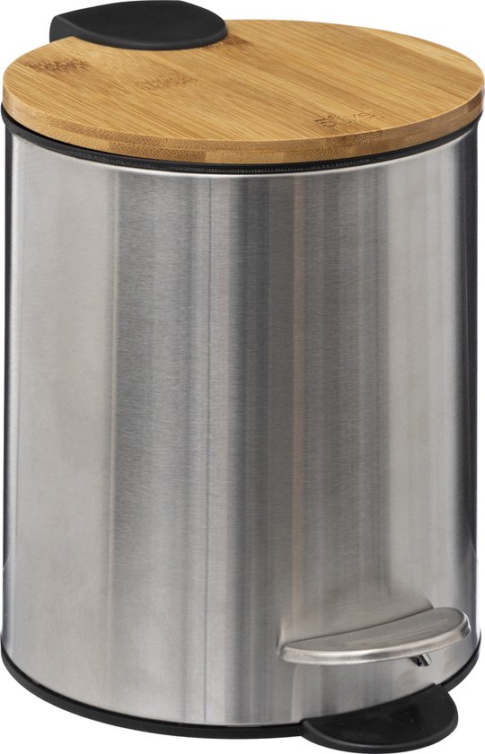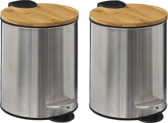 5Five Pedaalemmer – 2x – zilver – bamboe/metaal – 3L – 23 cm