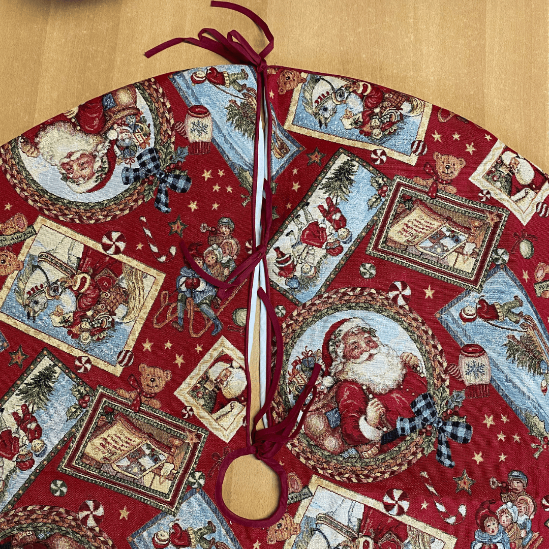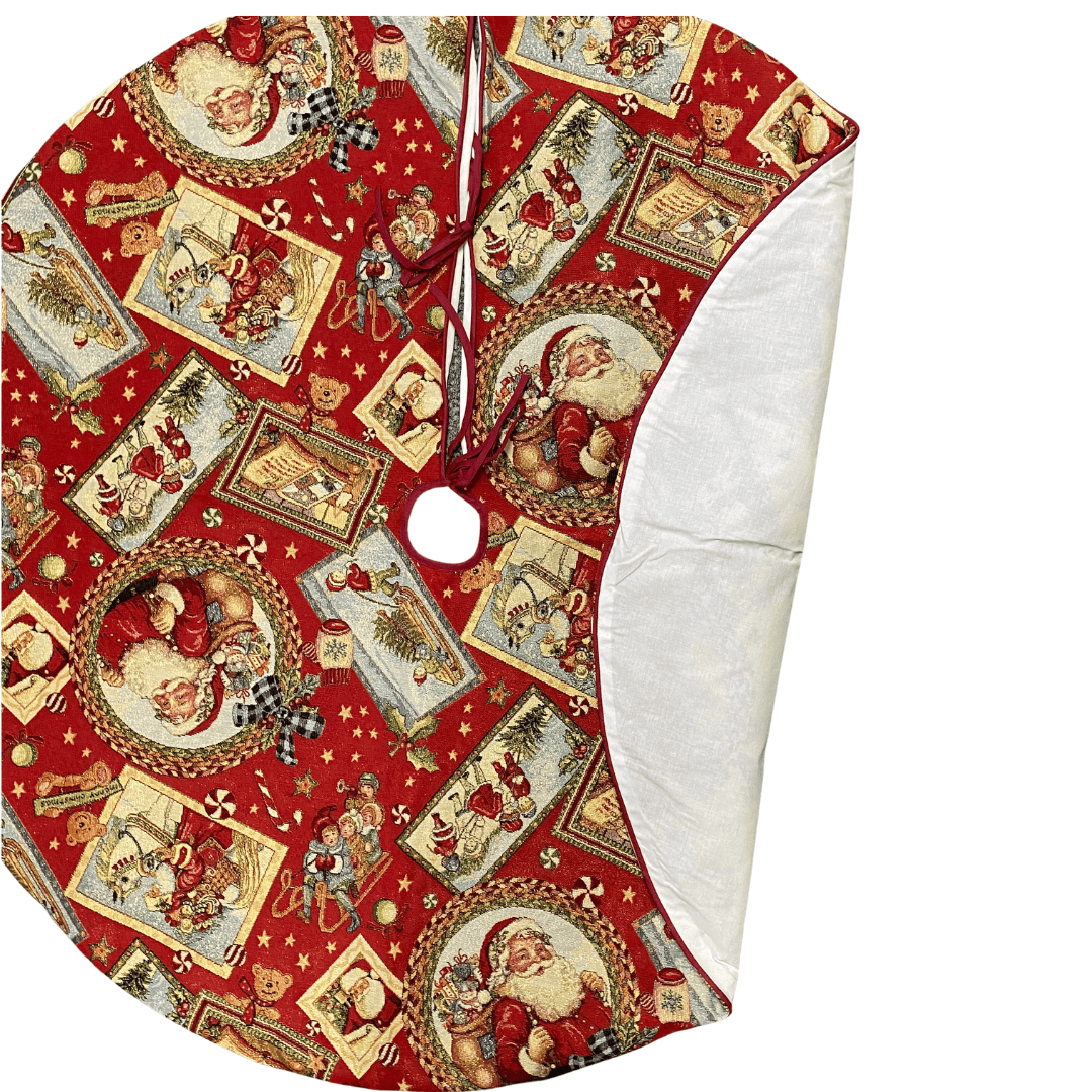 Boomrok – Kerst – Treeskirt – Gobelinstof – Rood – Wishes – Kerstman – goud glitterdraad – Rond 110 cm
