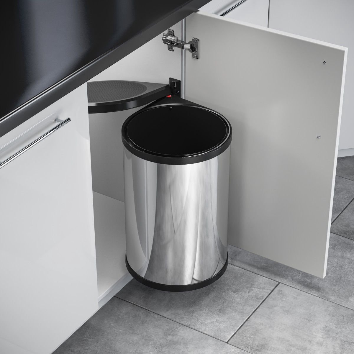 Deze inbouw-afvalemmer is ontworpen voor keukenkastjes met een draaideur van minimaal 40 cm breedte (en geschikt tot 90 cm), en vereist slechts een minimale kastdiepte van 30,5 cm. Dankzij de slimme swing-installatie opent de afvalemmer automatisch mee met de kastdeur.