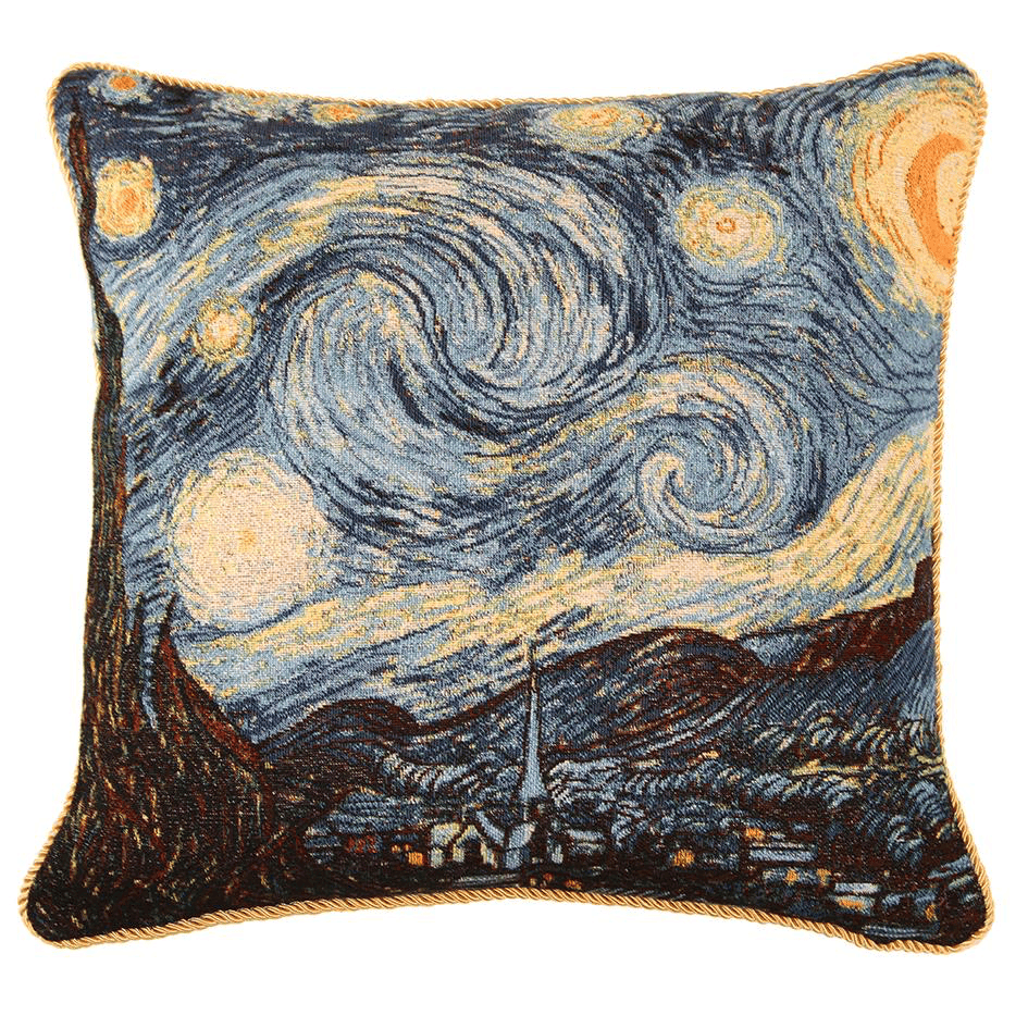 UNIEK LIFESTYLE-ONTWERP: dit kussenontwerp toont een van de bekendste Vincent van Gogh-schilderijen aller tijden, Sterrennacht. Onze kussenslopen van geweven tapijt zijn perfect voor een moderne afwerking. Op een bank of bank zal dit ontwerp een vleugje stijl toevoegen aan een lounge of woonkamer, of waarom zou u uw slaapkamer niet opvrolijken met een van Gogh-kussen?