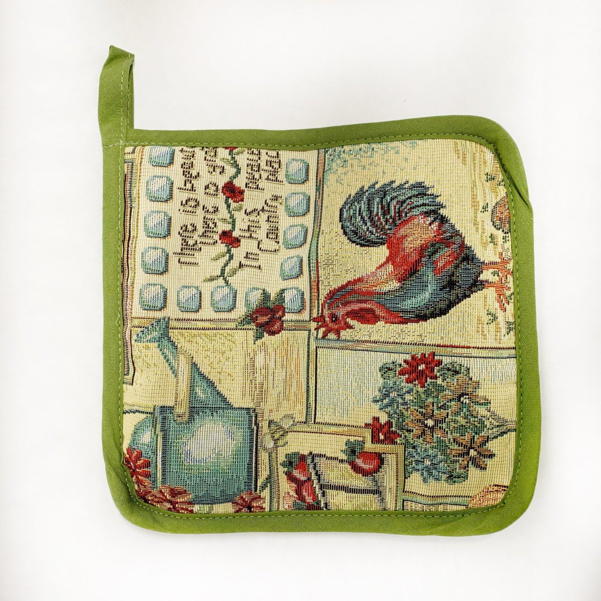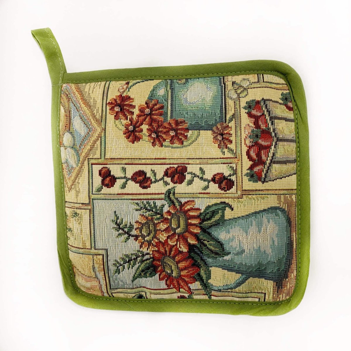 Mooie gevoerde pannenlap van Gobelinstof.