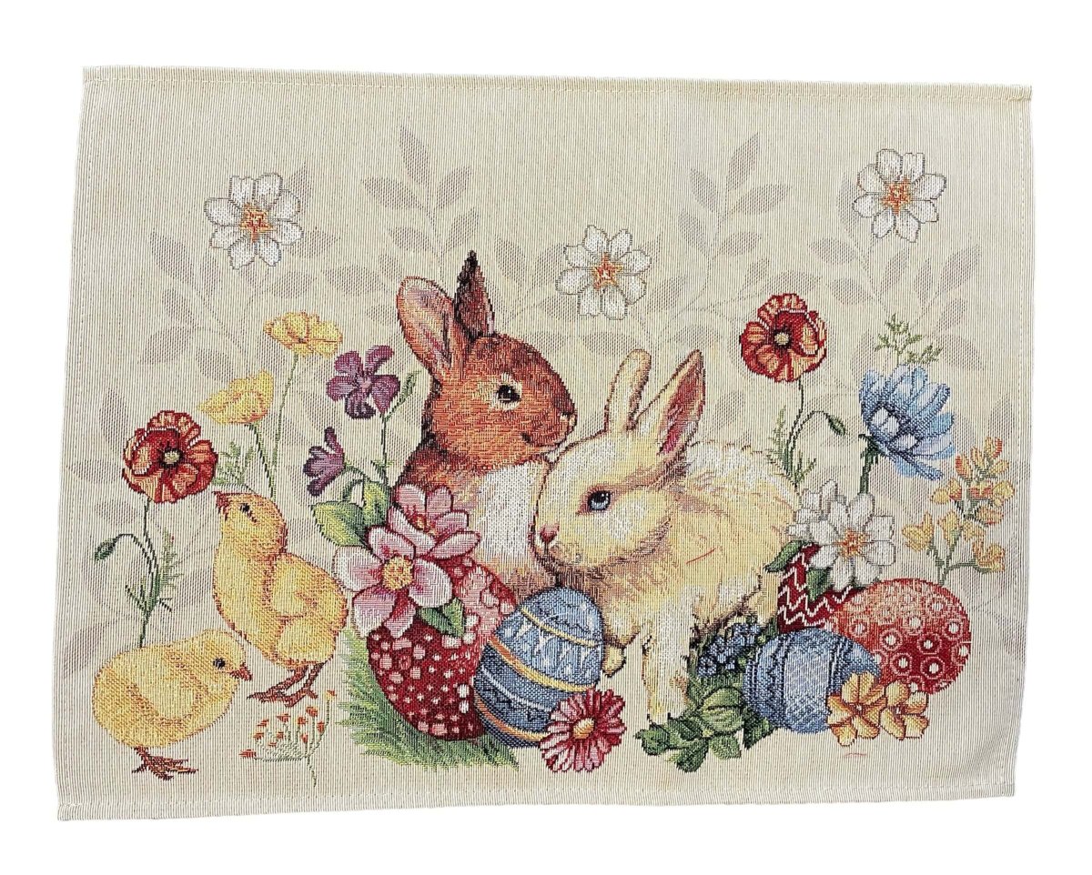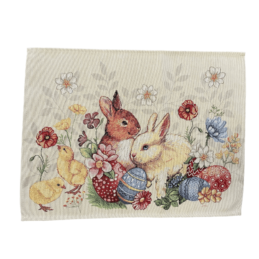 Placemat Pasen – Gobelinstof – Crème met Konijntjes – 45 x 35 cm