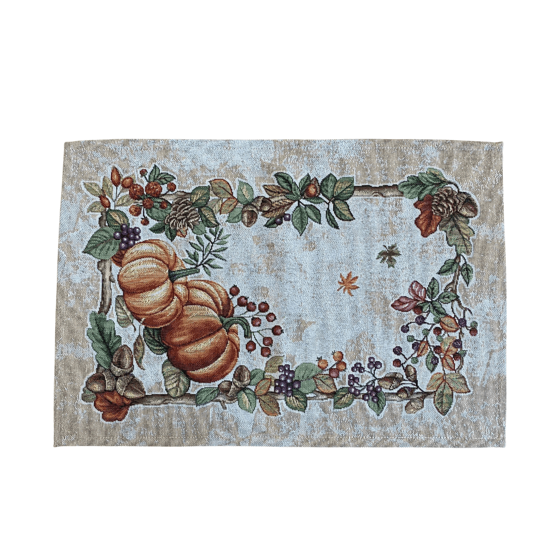 Placemat – Herfst – Gobelinstof – Beige ondergrond – pompoenen – eikels – dennenappels – besjes – herfstbladeren – 33 x 45 cm