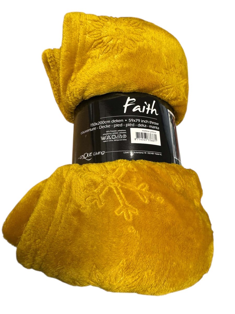Plaid – Faith – 150 x 200 cm – Mellow Yellow – met sneeuwvlokken