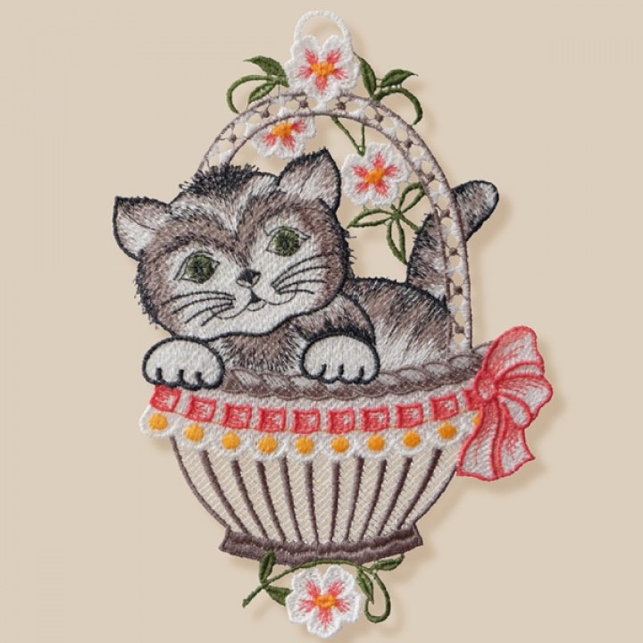 Raamdecoratie – Raamhanger – Kat in mandje – bloemen – met zuignap