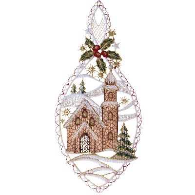Breng de warmte en sfeer van kerst in huis met deze prachtige kersthanger met kerk en kerstboom.