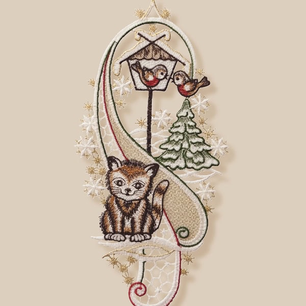 Breng gezelligheid en kerstsfeer in huis met deze charmante raamhanger met kat en kerstboom. Deze sfeervolle kerstdecoratie is ideaal om tijdens de feestdagen voor het raam, aan de spiegel of tegen de muur te hangen. Het speelse ontwerp van de kat bij de kerstboom maakt het een vrolijke en unieke toevoeging aan je kerstversiering.