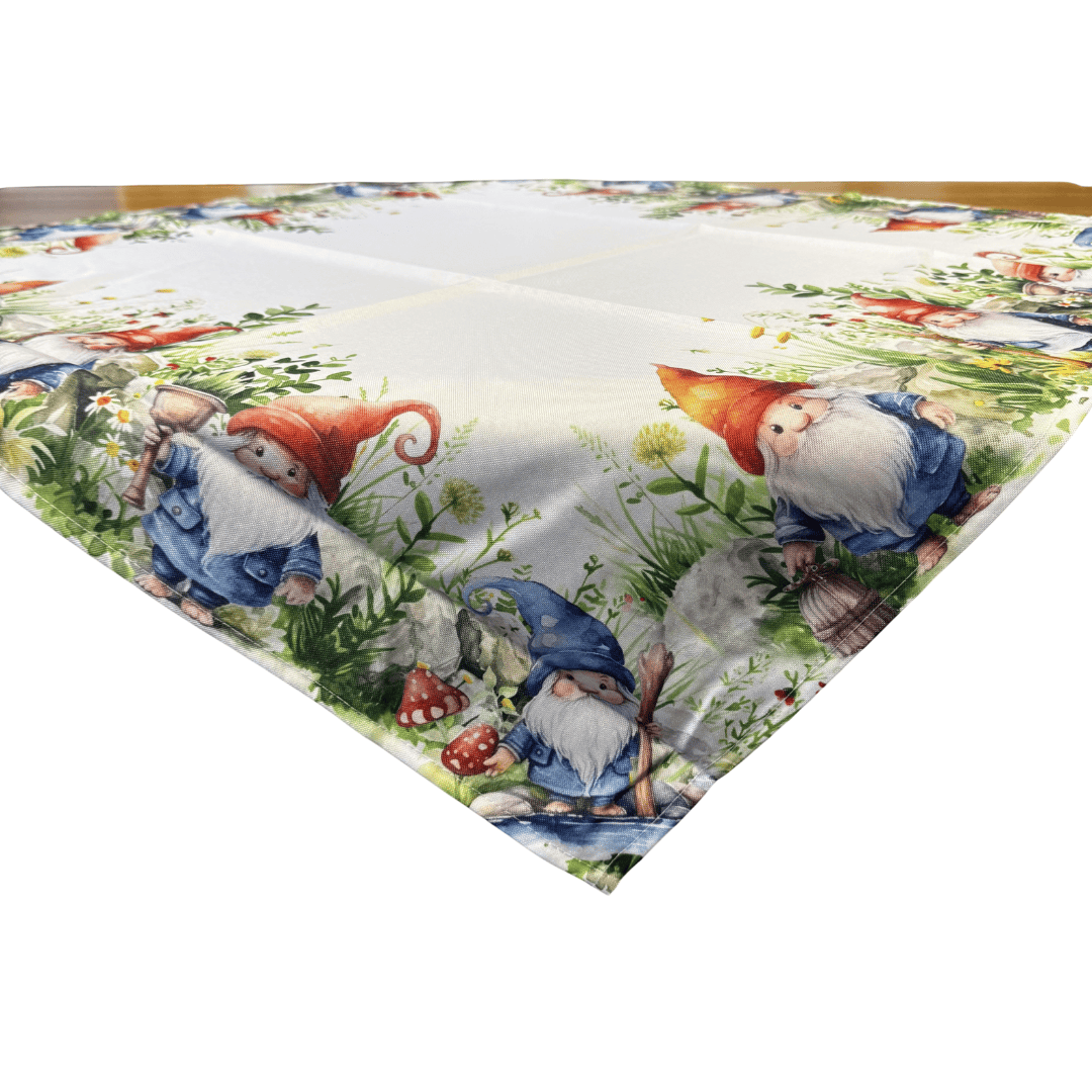 Tafelkleed – Bedrukt – Kabouter – Kabouters – Paddenstoelen – Lente – 85 x 85 cm