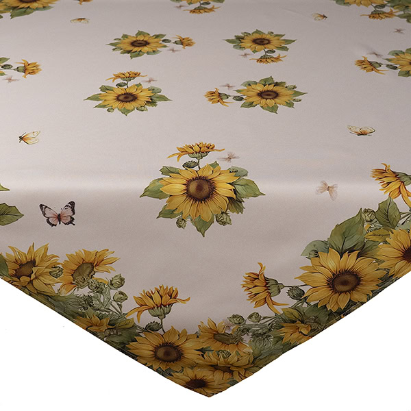 Tafelkleed – Bedrukt – Zonnebloemen – Vlinders – Lente – Creme achtergrond – 110 x 110 cm