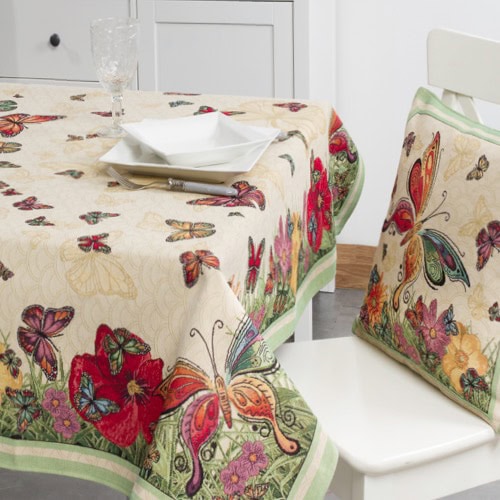 Tafelkleed – Gobelinstof – Vlinder – Vlinders – Butterfly – Mintgroene rand – Rechthoek 180 x 140 cm