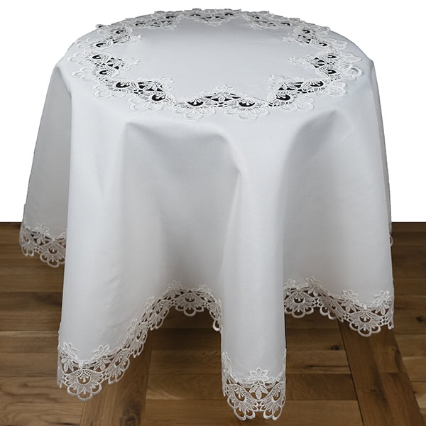 Tafelkleed – Grof kant – Wit – met opengewerkte rand – Rond 170 cm