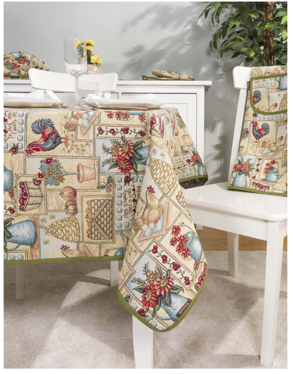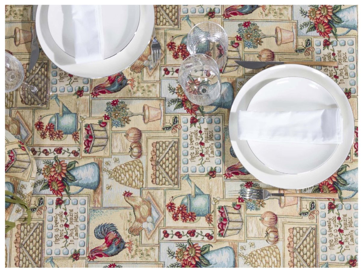 Tafelkleed – luxe gobelinstof – Farmhouse – kip – Haan – Boerderij – Vierkant 100 cm