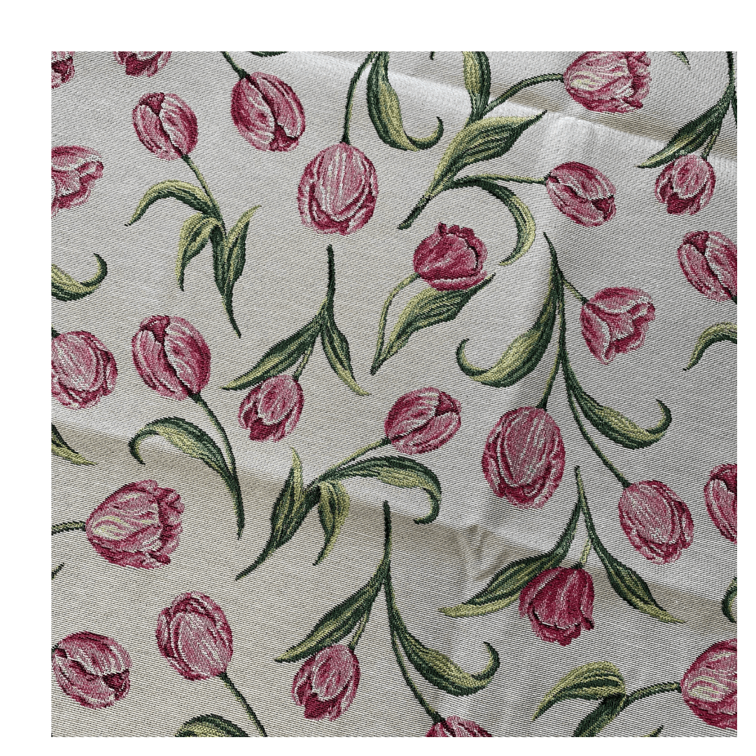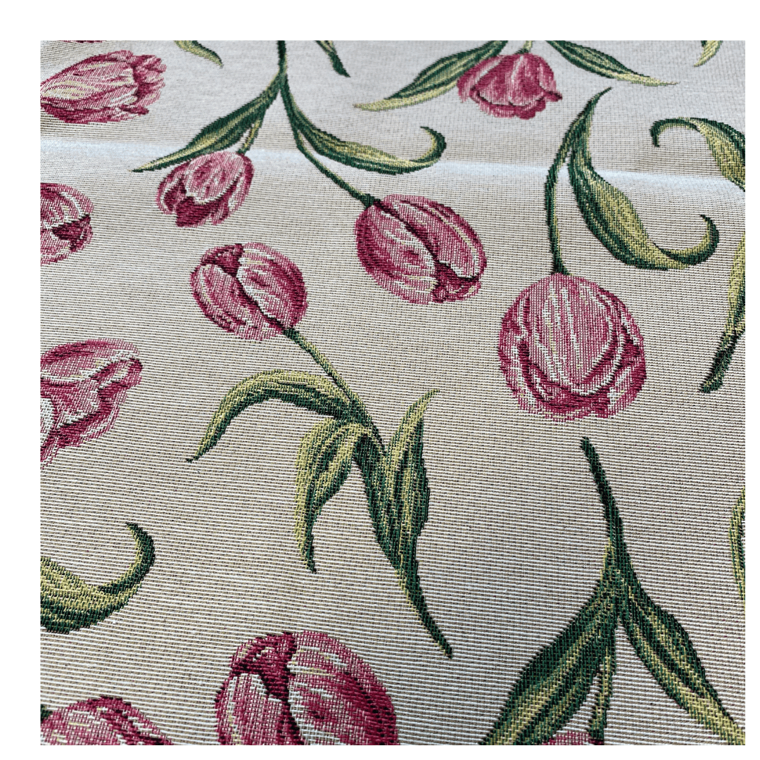 Breng het voorjaar op tafel met dit luxe tafelkleed van gobelinstof met vrolijke tulpenprint! De kleurrijke bloemen, kleine print en verfijnde afwerking zorgen voor een sfeervolle, romantische én eigentijdse uitstraling. Perfect voor wie houdt van een mooi gedekte tafel met een vleugje lente.