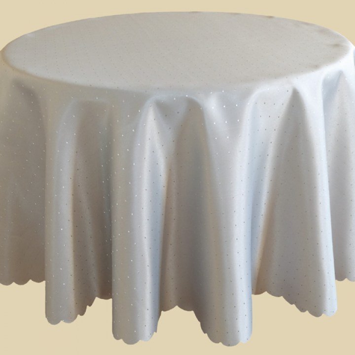 Een mooi rond en tafelkleed met een schulprand. Mooi als tafellaken of ontbijtlaken te gebruiken maar ook als onderkleed in combinatie met een topkleed.