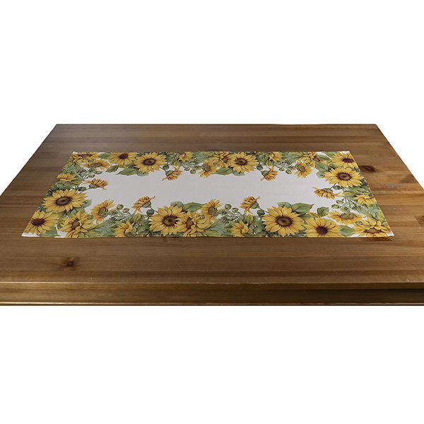 Deze tafelloper met zonnebloemen en vlinders is perfect voor wie op zoek is naar een subtiel maar sfeervol accent op tafel. De vrolijke lenteprint op een crème achtergrond brengt direct warmte en gezelligheid in huis en past mooi op kleinere tafels, dressoirs of salontafels.