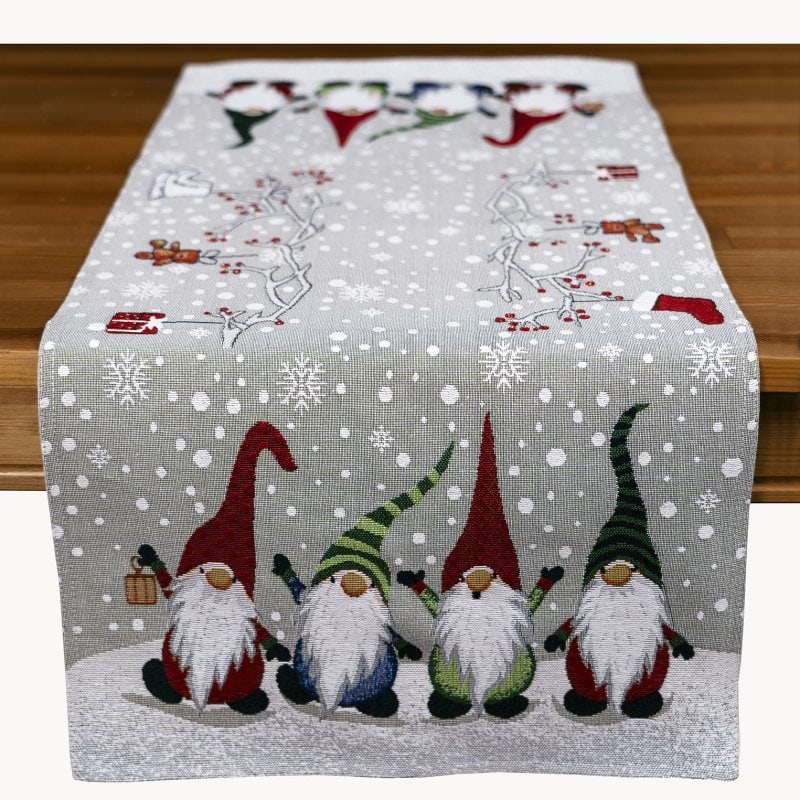 Tafelloper – Gobelinstof – Kerst – Wichtels – kabouter – cadeautjes – Loper 90 cm
