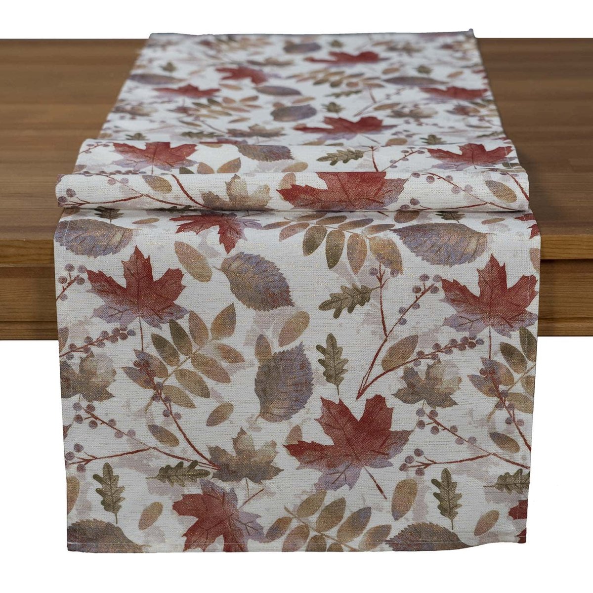 Tafelloper – Herfstbladeren – Bedrukt – Groen – Rood – met goud glitterdraad – Loper 180 x 40 cm