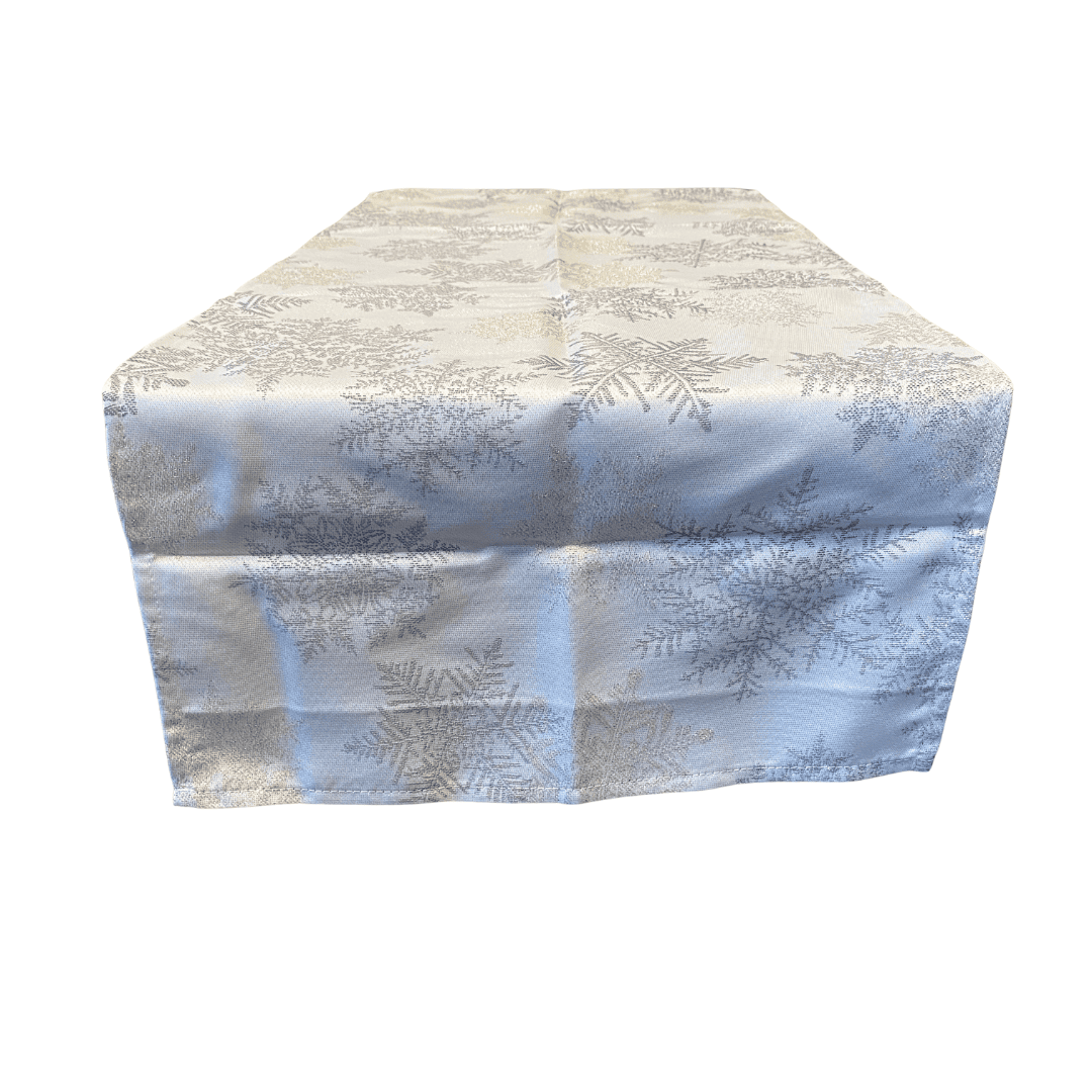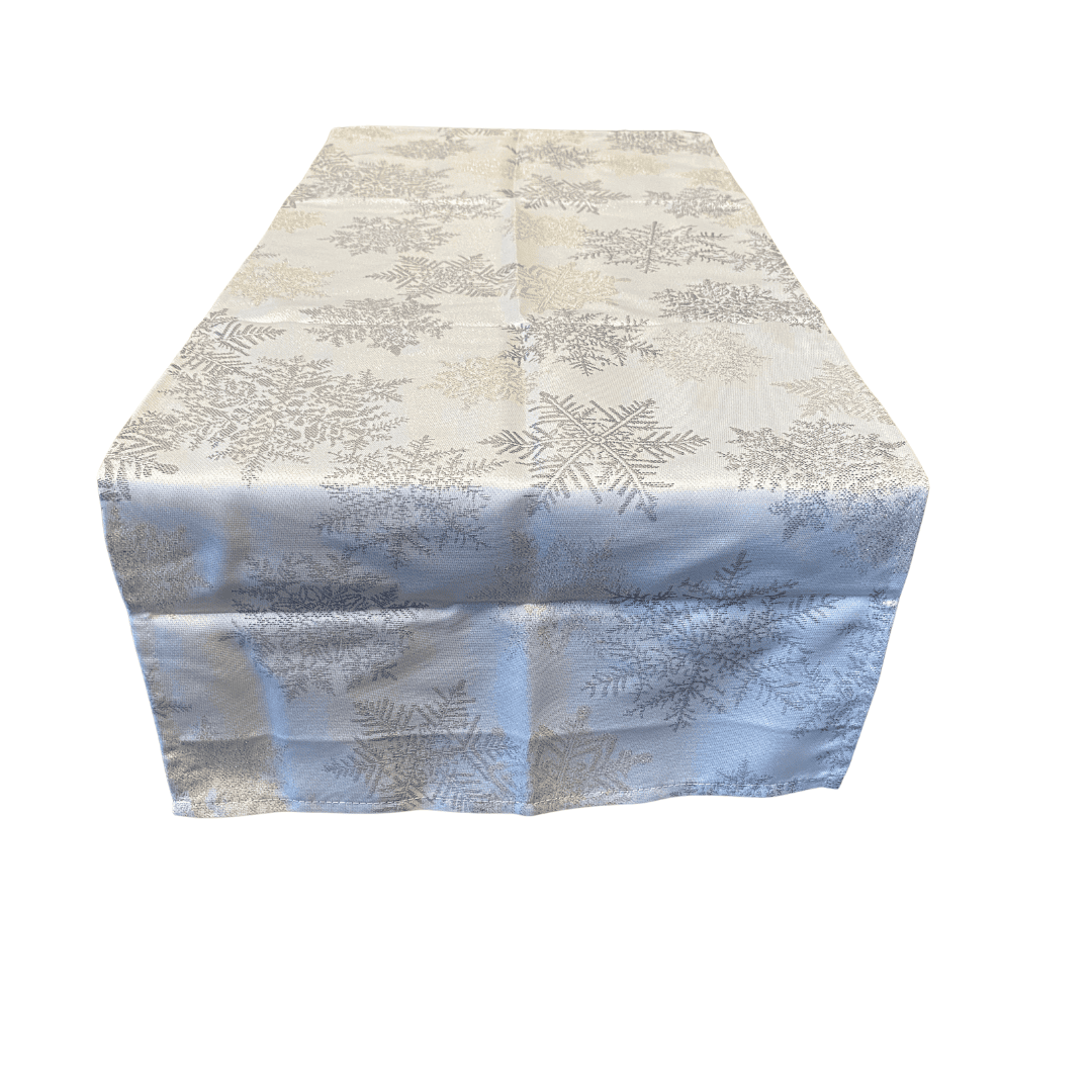 Luxe en gezelligheid op tafel – dat is precies wat deze kersttafelloper uitstraalt. Met een elegante linnenlook als basis en een feestelijk patroon van goud- en grijsgekleurde sneeuwvlokken, geeft dit kleed je interieur in één klap een stijlvolle kerstsfeer.