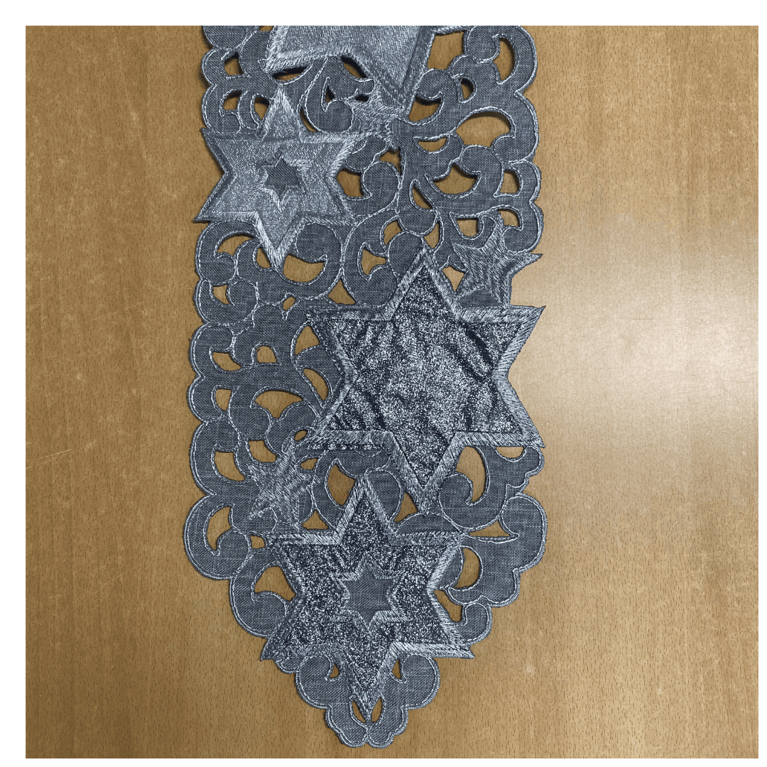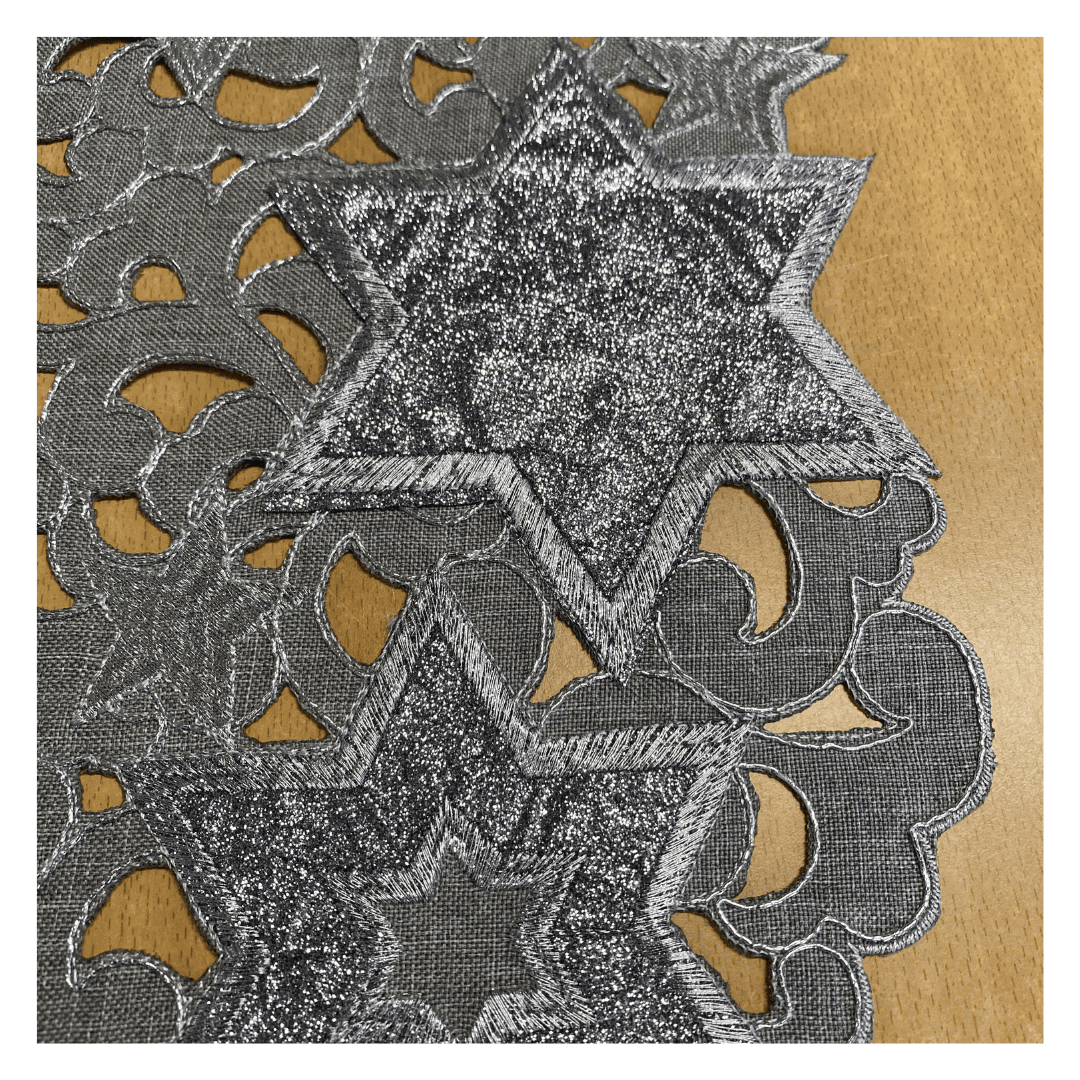 Tafelloper – Kerst – Linnenlook – Grijs met sterren in zilver en grijs – 20 x 160 cm