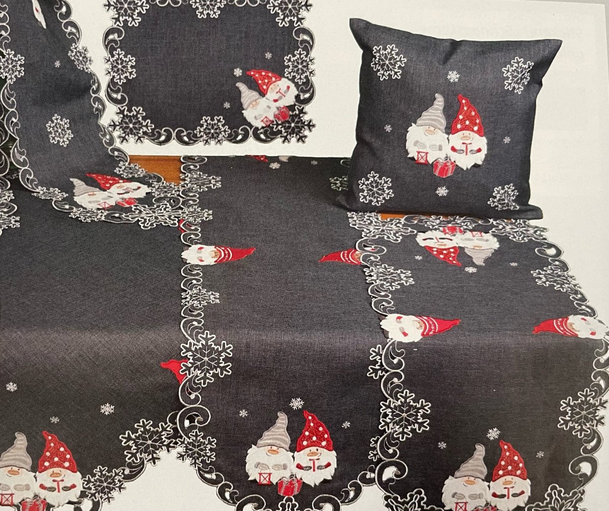 Tafelloper – linnenlook – Kerst – Donkergrijs met kabouters – gnoom – wichtels – Loper 33 x 45 cm