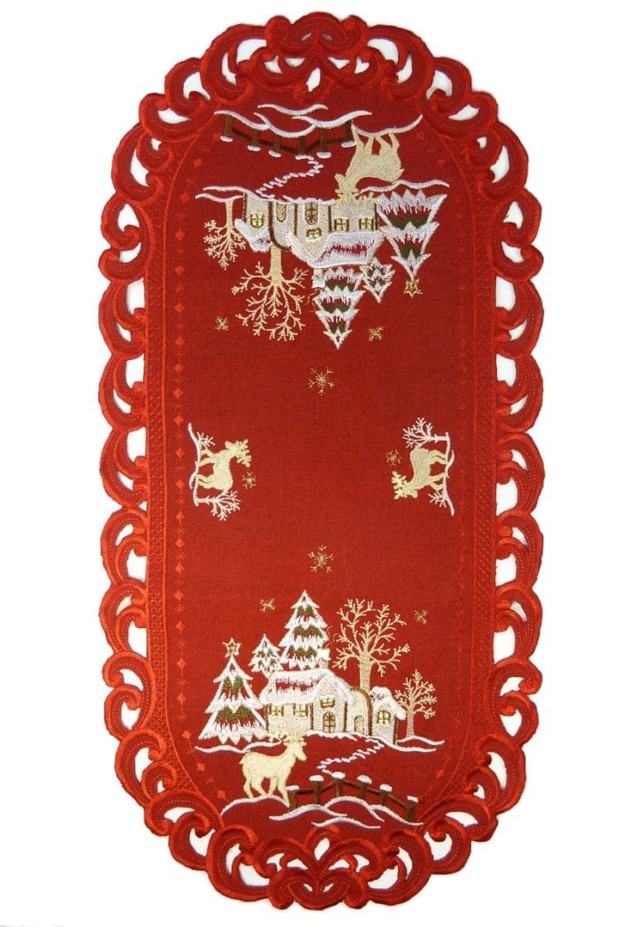 Tafelloper Linnenlook Rood met Hert – Kerst – Rendier – 70 cm