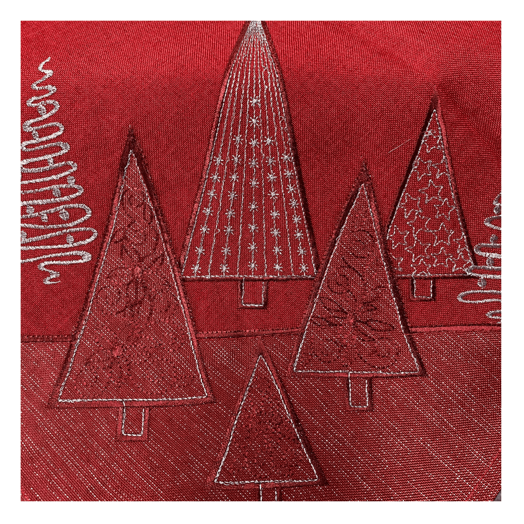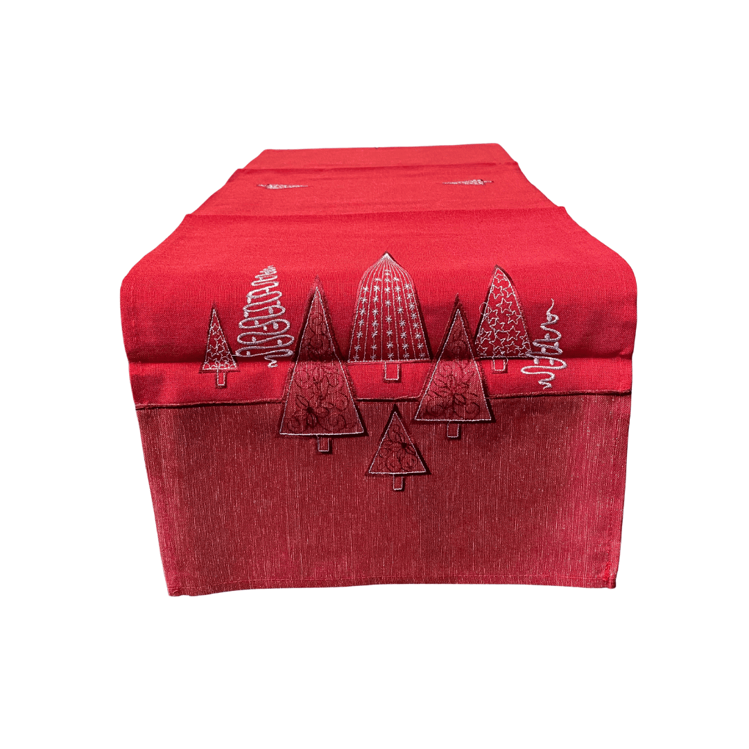 Tafelloper – Linnenlook – Rood – Moderne strakke Kerstbomen in donker rood en zilver kleur – 40 x 90 cm