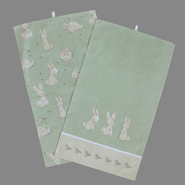 Theedoeken – Set van 2 – Groen – Pasen – Paashaas – Haasjes – Lente – 40 x 70 cm