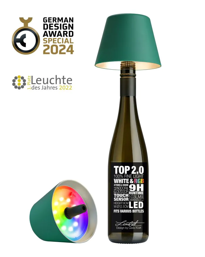 Met geheugenfunctie: De kleurmodus en de lichtsterkte van de TOP 2.0 fleslamp worden opgeslagen. Zo kunt u de TOP 2.0 comfortabel met de door u gewenste instellingen starten.