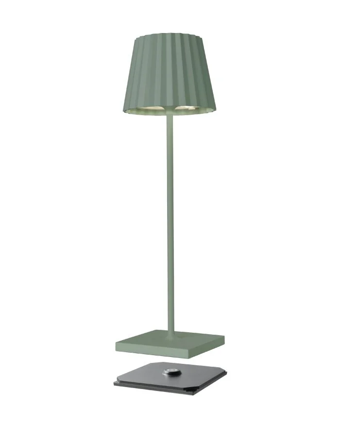 TROLL 2.0 – de tafellamp voor buiten met de onmiskenbare geplooide kap. De TROLL 2.0 is gemaakt van aluminium en gecoat in verschillende kleuren en patronen. Dankzij de IP54-classificatie kan hij zowel binnen als buiten worden gebruikt. De krachtige oplaadbare batterijen geven tot 24 uur draadloos licht. Via de aanraaksensor aan de bovenkant van het armatuur kan het armatuur traploos worden gedimd en kan worden gekozen uit twee warmwitte lichtkleuren. De TROLL 2.0 kan in een handomdraai worden opgeladen via het meegeleverde oplaadstation.