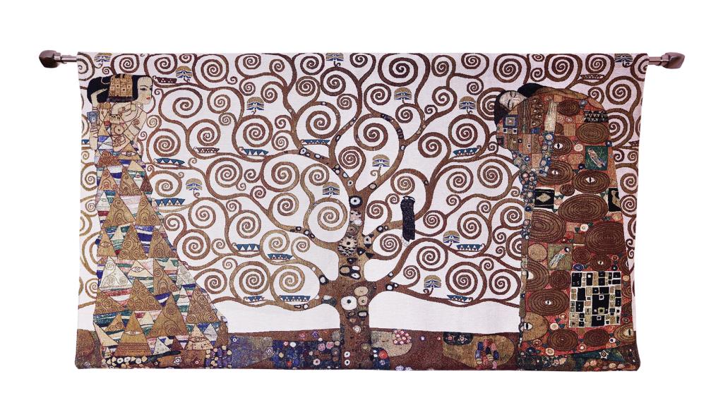 Het Wandkleed – Gustav Klimt – Tree of Life is in ons wel bekende geweven Gobelin stijl.